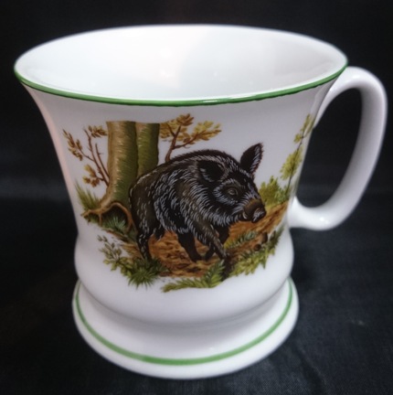 Bierkrug mit Zinndeckel Porzellankrug mit künstlerischen Wildmotive. Rolldeckel…
